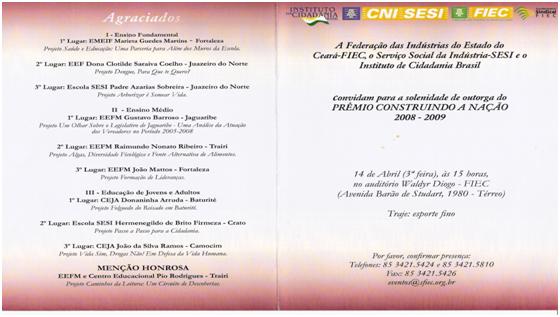 Um olhar sobre o legislativo de Jaguaribe- uma análise da atuação dos vereadores no período 2005-2008 é um projeto significativo cujo reconhecimento se dá com a conquista do Prêmio Construindo uma Nação.